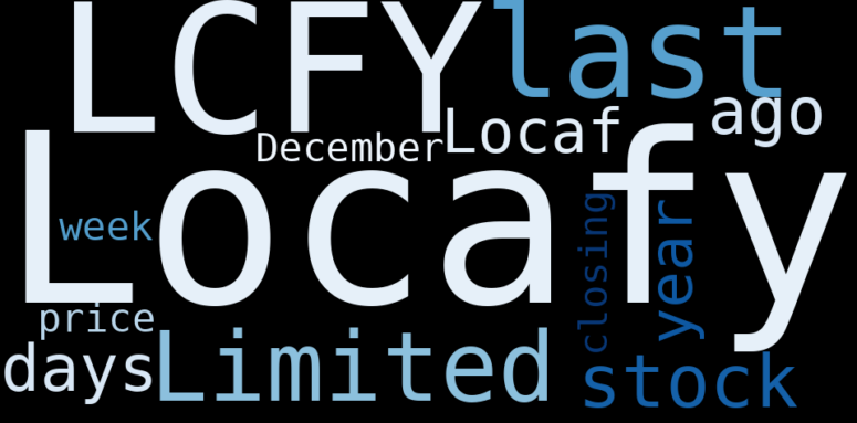 Are looking for the most relevant information about Locafy? Investor spend a lot of time searching for information to make investment decisions in Locafy. This task is often burdensome and consumes huge amounts of free time. It also leads to mistakes due to fatigue and bounded rationality. As a solution, we programmed an artificial intelligence that reads the whole internet and the uses natural language processing and vectorizers to summarize the information. Usually, the AI reads several hundred pages and summarize it to a short document. This document presents our results. We found that the most common words in the internet about Locafy are: last, Locafy, Limited, stock, day, ago, Locaf, and the most common words in the summary are: locafy, stock, news, pm, lcfy, analysis, nasdaq, . One of the sentences in the summary was: Locafy Limited stock is up 22.58% since 30 days ago. Other searches related to …