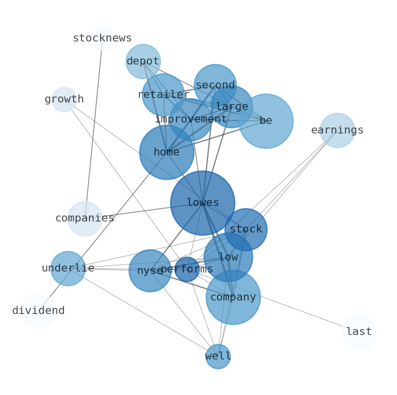 The game is changing. There is a new strategy to evaluate Lowes Companies fundamental value, possible risks and most salient advantages. Investors have traditionally relied in reading large amounts of text to evaluate the fundamental value of a stock or company. However, the development of Artificial Intelligence (AI) tools is modifying the way investments are evaluated in markets. Today, machine learning, natural language processing and bigdata allow making this process automatic, reducing large amounts of text to the elements that have a higher activation in a neural network. We programmed an artificial intelligence that reads the whole internet and the uses natural language processing and vectorizers to summarize the information. Usually, the AI reads several hundred pages and summarize it to a short document. This document presents our results. We found that the most common words in the internet about Lowes Companies are: Lowes, Companies, stock, improvement, NYSELOW, earnings, last, …
