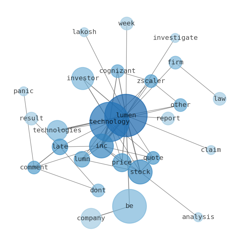 This document will help you to evaluate Lumen Technologies without reading an infinite amount of sources. Relying only on stock quotes or prices to make investment decisions is a mistake. Analyzing and observing stock charts, highs and lows and other numerical data does not allow to evaluate the real value of a company. Stock quotes and prices are the result of underlying characteristics of a company and of events and news happening around them. For this reason, investing must be based on information, not numbers. As a solution, we programmed an artificial intelligence that reads the whole internet and the uses natural language processing and vectorizers to summarize the information. Usually, the AI reads several hundred pages and summarize it to a short document. This document presents our results. We found that the most common words in the internet about Lumen Technologies are: Lumen, Technologies, stock, Inc, price, company, LUMN, …