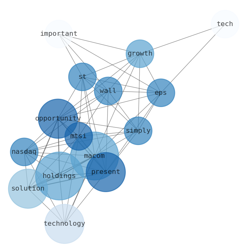 How much time have you spent trying to decide whether investing in MACOM Technology Solutions Holdings? Many investors start with the dream of being free. They expect to find on the stock market an option to have time to develop their own interests and hobbies. That is, a way to escape a 9 to 5 job. However, investment is complex and investors end up spending whole days (and nights) trying to figure out which the right stock to invest is. The dream of stock investing becomes the nightmare of facing infinity amounts of information. As a solution, we programmed an artificial intelligence that reads the whole internet and the uses natural language processing and vectorizers to summarize the information. Usually, the AI reads several hundred pages and summarize it to a short document. This document presents our results. We found that the most common words in the internet about MACOM …