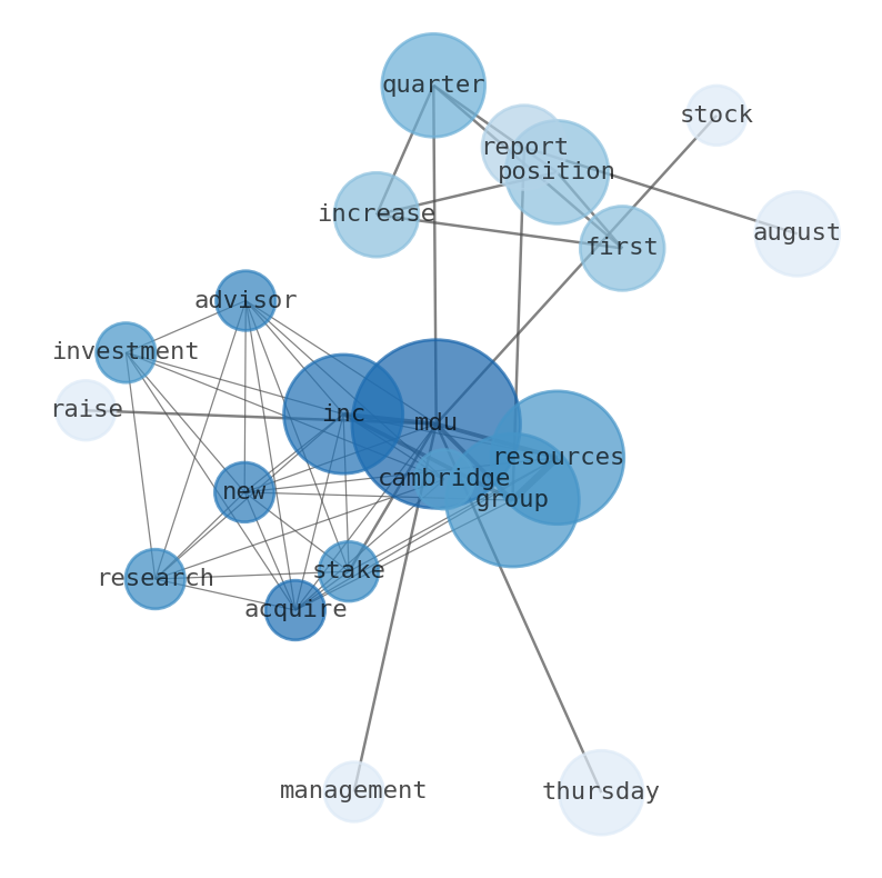 The game is changing. There is a new strategy to evaluate MDU Resources Group fundamental value, possible risks and most salient advantages. Investors have traditionally relied in reading large amounts of text to evaluate the fundamental value of a stock or company. However, the development of Artificial Intelligence (AI) tools is modifying the way investments are evaluated in markets. Today, machine learning, natural language processing and bigdata allow making this process automatic, reducing large amounts of text to the elements that have a higher activation in a neural network. We programmed an artificial intelligence that reads the whole internet and the uses natural language processing and vectorizers to summarize the information. Usually, the AI reads several hundred pages and summarize it to a short document. This document presents our results. We found that the most common words in the internet about MDU Resources Group are: MDU, Resources, Group, Inc, position, …