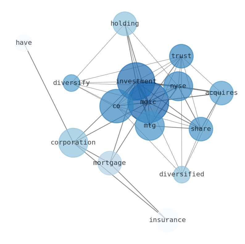 Are looking for the most relevant information about MGIC Investment? Investor spend a lot of time searching for information to make investment decisions in MGIC Investment. This task is often burdensome and consumes huge amounts of free time. It also leads to mistakes due to fatigue and bounded rationality. As a solution, we programmed an artificial intelligence that reads the whole internet and the uses natural language processing and vectorizers to summarize the information. Usually, the AI reads several hundred pages and summarize it to a short document. This document presents our results. We found that the most common words in the internet about MGIC Investment are: MGIC, Co, Investment, Corporation, Trust, NYSEMTG, holding, and the most common words in the summary are: investment, mgic, report, stock, job, dividend, company, . One of the sentences in the summary was: (NYSE:MTG) Diversify Trust Cos holdings in MGIC investment were worth $249,000 …