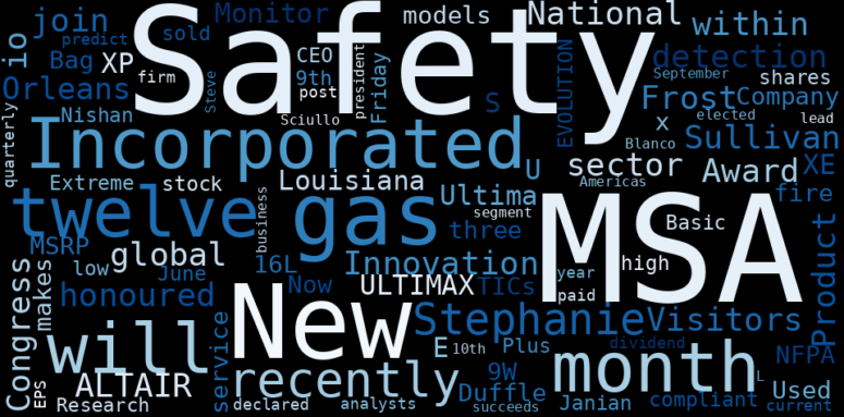 MSA Safety Incorporated develops, manufactures, and supplies safety products and software that protect people and facility infrastructures in the oil, gas, petrochemical, fire service, construction, industrial manufacturing applications, heating, ventilation, air conditioning and refrigeration, utilities, military, and mining industries in North America, Latin America, and internationally. The company's core product offerings include permanently installed fixed gas and flame detection instruments, such as permanently installed gas detection monitoring systems, and flame detectors and open-path infrared gas detectors, as well as replacement components and related services to detect the presence or absence of various gases in the air. Its core product offerings also comprise breathing apparatus products, such as self-contained breathing apparatus; hand-held portable gas detection instruments; industrial head protection products; firefighter helmets and protective apparel; and fall protection equipment, including confined space equipment, harnesses, lanyards, and self-retracting lifelines, as well as engineered systems. In addition, the company offers air-purifying respirators, eye and face protection products, ballistic helmets, and gas masks. It serves distributors and end-users through indirect and direct sales channels. The company offers its product under the V-Gard, Cairns, and Gallet brand names. MSA Safety Incorporated was founded in 1914 and is based in Cranberry Township, Pennsylvania.