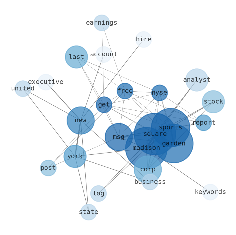 This document will help you to evaluate Madison Square Garden Sports without reading an infinite amount of sources. Relying only on stock quotes or prices to make investment decisions is a mistake. Analyzing and observing stock charts, highs and lows and other numerical data does not allow to evaluate the real value of a company. Stock quotes and prices are the result of underlying characteristics of a company and of events and news happening around them. For this reason, investing must be based on information, not numbers. As a solution, we programmed an artificial intelligence that reads the whole internet and the uses natural language processing and vectorizers to summarize the information. Usually, the AI reads several hundred pages and summarize it to a short document. This document presents our results. We found that the most common words in the internet about Madison Square Garden Sports are: Madison, Square, Garden, Sports, Corp, new, last, and the most common words in the summary are: garden, madison, square, sport, new, york, msg, . One of the sentences in the summary was: last posted its earnings results on Thursday, August 17th. Other searches related to this term that the AI found were: stockmarketlive, livestock, stockmarketforbeginners, thestockmarket, stockmarkettoday, stockmarkettrading, stockmarketstocks, todaystockmarket, thestockmarket, marketnews, stockmarketnews, whatisstockmarket, usstockmarket, stockmarketopen. #garden #madison #square #sport #new #york #msg.