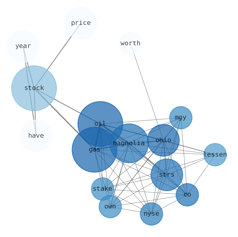 Are looking for the most relevant information about Magnolia Oil & Gas? Investor spend a lot of time searching for information to make investment decisions in Magnolia Oil & Gas. This task is often burdensome and consumes huge amounts of free time. It also leads to mistakes due to fatigue and bounded rationality. As a solution, we programmed an artificial intelligence that reads the whole internet and the uses natural language processing and vectorizers to summarize the information. Usually, the AI reads several hundred pages and summarize it to a short document. This document presents our results. We found that the most common words in the internet about Magnolia Oil & Gas are: stock, Magnolia, Gas, Strs, Ohio, Oil, oil, and the most common words in the summary are: oil, magnolia, gas, view, price, essential, art, . One of the sentences in the summary was: Strs Ohio lessened its stake …