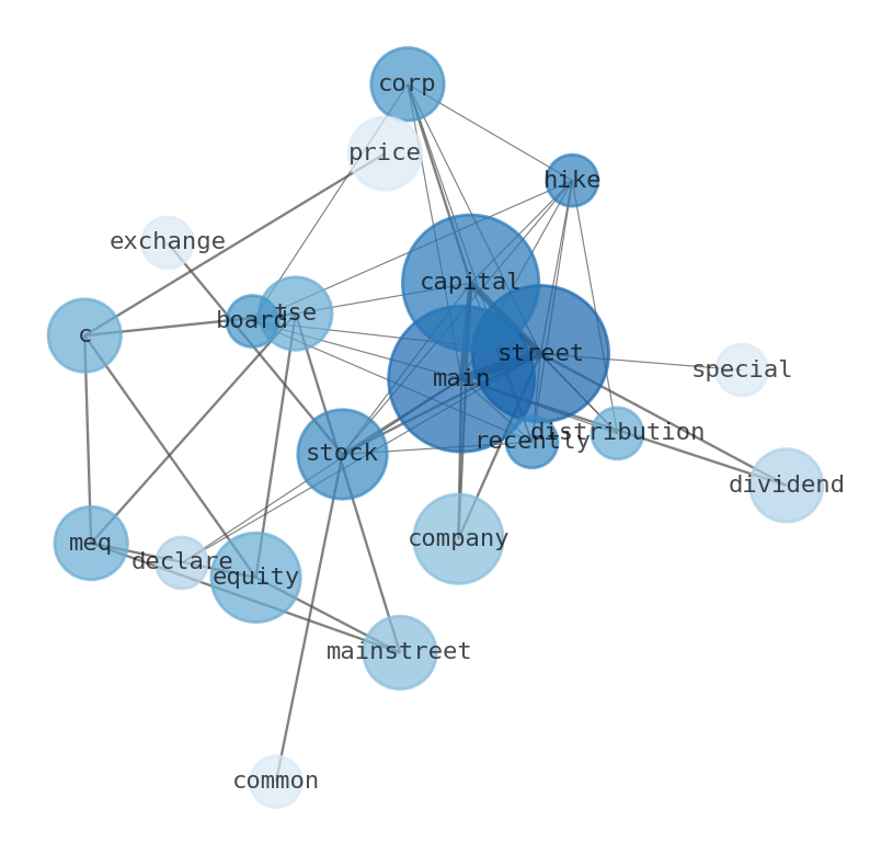 The game is changing. There is a new strategy to evaluate Main Street Capital fundamental value, possible risks and most salient advantages. Investors have traditionally relied in reading large amounts of text to evaluate the fundamental value of a stock or company. However, the development of Artificial Intelligence (AI) tools is modifying the way investments are evaluated in markets. Today, machine learning, natural language processing and bigdata allow making this process automatic, reducing large amounts of text to the elements that have a higher activation in a neural network. We programmed an artificial intelligence that reads the whole internet and the uses natural language processing and vectorizers to summarize the information. Usually, the AI reads several hundred pages and summarize it to a short document. This document presents our results. We found that the most common words in the internet about Main Street Capital are: Main, Street, Capital, capital, company, …