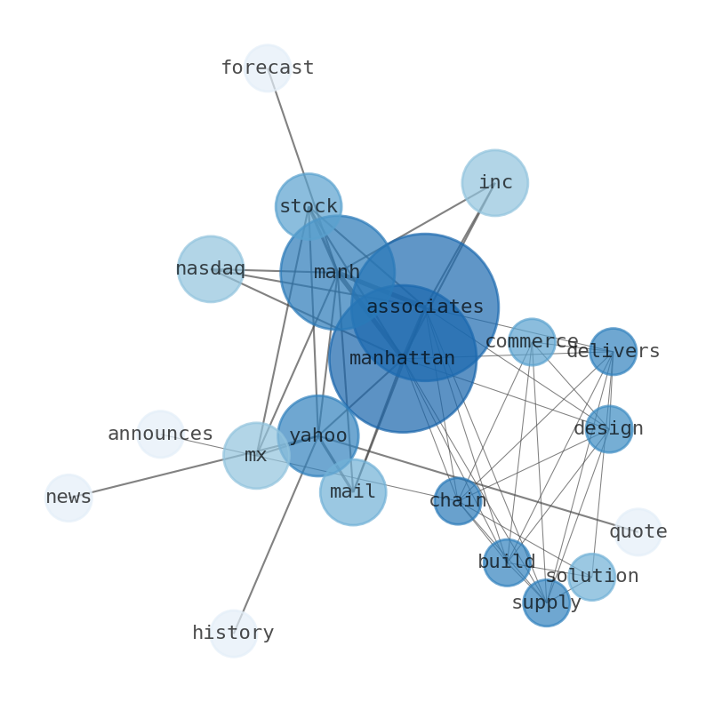 This document will help you to evaluate Manhattan Associates without reading an infinite amount of sources. Relying only on stock quotes or prices to make investment decisions is a mistake. Analyzing and observing stock charts, highs and lows and other numerical data does not allow to evaluate the real value of a company. Stock quotes and prices are the result of underlying characteristics of a company and of events and news happening around them. For this reason, investing must be based on information, not numbers. As a solution, we programmed an artificial intelligence that reads the whole internet and the uses natural language processing and vectorizers to summarize the information. Usually, the AI reads several hundred pages and summarize it to a short document. This document presents our results. We found that the most common words in the internet about Manhattan Associates are: Manhattan, Associates, Yahoo, Mail, design, build, delivers, …