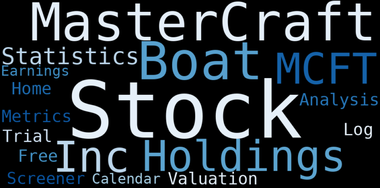 Are looking for the most relevant information about MasterCraft Boat Holdings? Investor spend a lot of time searching for information to make investment decisions in MasterCraft Boat Holdings. This task is often burdensome and consumes huge amounts of free time. It also leads to mistakes due to fatigue and bounded rationality. As a solution, we programmed an artificial intelligence that reads the whole internet and the uses natural language processing and vectorizers to summarize the information. Usually, the AI reads several hundred pages and summarize it to a short document. This document presents our results. We found that the most common words in the internet about MasterCraft Boat Holdings are: Stock, MasterCraft, Boat, Holdings, Inc, MCFT, Statistics, and the most common words in the summary are: boat, inc, holding, cover, ttop, shade, kit, . One of the sentences in the summary was: (MCFT) Statistics & Valuation Metrics - Stock Analysis. …
