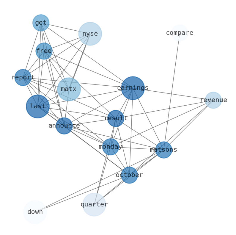 Are looking for the most relevant information about Matson? Investor spend a lot of time searching for information to make investment decisions in Matson. This task is often burdensome and consumes huge amounts of free time. It also leads to mistakes due to fatigue and bounded rationality. As a solution, we programmed an artificial intelligence that reads the whole internet and the uses natural language processing and vectorizers to summarize the information. Usually, the AI reads several hundred pages and summarize it to a short document. This document presents our results. We found that the most common words in the internet about Matson are: Matson, NYSEMATX, last, earnings, quarter, Get, Free, and the most common words in the summary are: matson, new, port, news, home, january, form, . One of the sentences in the summary was: Matsons revenue for the quarter was down 25.8% compared to the same quarter last year. Other searches related to this term that the AI found were: stockmarketlive, livestock, stockmarketforbeginners, thestockmarket, stockmarkettoday, stockmarkettrading, stockmarketstocks, todaystockmarket, thestockmarket, marketnews, stockmarketnews, whatisstockmarket, usstockmarket, stockmarketopen. #matson #new #port #news #home #january #form.