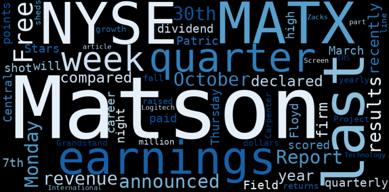 How much time have you spent trying to decide whether investing in Matson? Many investors start with the dream of being free. They expect to find on the stock market an option to have time to develop their own interests and hobbies. That is, a way to escape a 9 to 5 job. However, investment is complex and investors end up spending whole days (and nights) trying to figure out which the right stock to invest is. The dream of stock investing becomes the nightmare of facing infinity amounts of information. As a solution, we programmed an artificial intelligence that reads the whole internet and the uses natural language processing and vectorizers to summarize the information. Usually, the AI reads several hundred pages and summarize it to a short document. This document presents our results. We found that the most common words in the internet about Matson are: Matson, NYSEMATX, …
