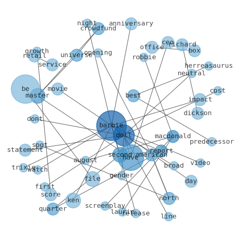 Are looking for the most relevant information about Mattel? Investor spend a lot of time searching for information to make investment decisions in Mattel. This task is often burdensome and consumes huge amounts of free time. It also leads to mistakes due to fatigue and bounded rationality. As a solution, we programmed an artificial intelligence that reads the whole internet and the uses natural language processing and vectorizers to summarize the information. Usually, the AI reads several hundred pages and summarize it to a short document. This document presents our results. We found that the most common words in the internet about Mattel are: Mattel, Barbie, dolls, doll, new, toy, Masters, and the most common words in the summary are: mattel, barbie, job, new, stock, inc, year, . One of the sentences in the summary was: The dolls, which cost $29.99, dont have broad shoulders like Ken or breasts like …