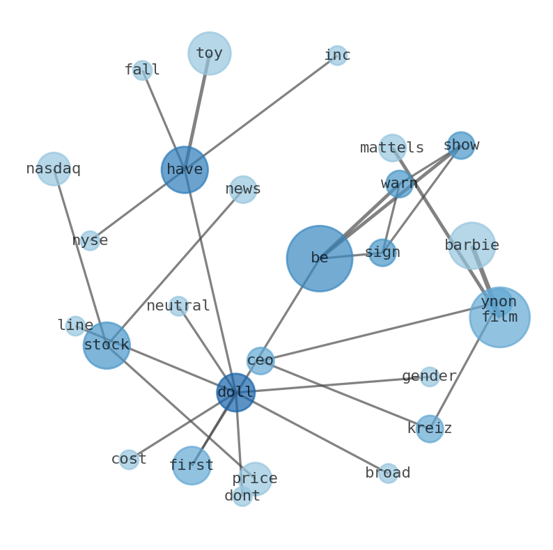 This document will help you to evaluate Mattel without reading an infinite amount of sources. Relying only on stock quotes or prices to make investment decisions is a mistake. Analyzing and observing stock charts, highs and lows and other numerical data does not allow to evaluate the real value of a company. Stock quotes and prices are the result of underlying characteristics of a company and of events and news happening around them. For this reason, investing must be based on information, not numbers. As a solution, we programmed an artificial intelligence that reads the whole internet and the uses natural language processing and vectorizers to summarize the information. Usually, the AI reads several hundred pages and summarize it to a short document. This document presents our results. We found that the most common words in the internet about Mattel are: Mattel, film, Barbie, stock, producer, first, toy, and the most common words in the summary are: mattel, barbie, stock, film, new, shop, news, . One of the sentences in the summary was: Mattel earned 5 percent of box office revenue, as well as a percentage of eventual profits.. Other searches related to this term that the AI found were: stockmarketlive, livestock, stockmarketforbeginners, thestockmarket, stockmarkettoday, stockmarkettrading, stockmarketstocks, todaystockmarket, thestockmarket, marketnews, stockmarketnews, whatisstockmarket, usstockmarket, stockmarketopen. #mattel #barbie #stock #film #new #shop #news.