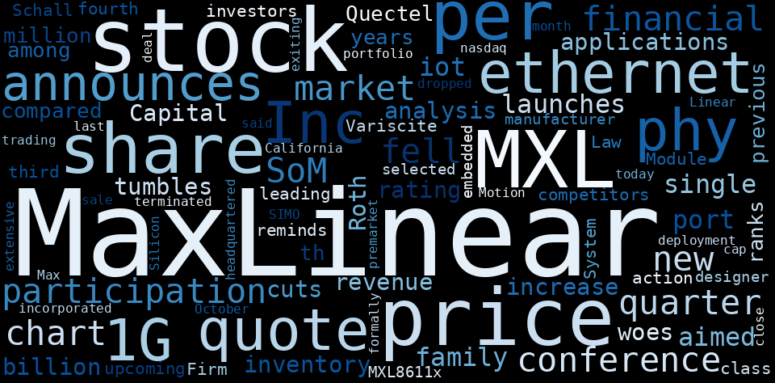 The game is changing. There is a new strategy to evaluate MaxLinear fundamental value, possible risks and most salient advantages. Investors have traditionally relied in reading large amounts of text to evaluate the fundamental value of a stock or company. However, the development of Artificial Intelligence (AI) tools is modifying the way investments are evaluated in markets. Today, machine learning, natural language processing and bigdata allow making this process automatic, reducing large amounts of text to the elements that have a higher activation in a neural network. We programmed an artificial intelligence that reads the whole internet and the uses natural language processing and vectorizers to summarize the information. Usually, the AI reads several hundred pages and summarize it to a short document. This document presents our results. We found that the most common words in the internet about MaxLinear are: MaxLinear, stock, price, MXL, MaxLinears, share, Maxlinear, and the …