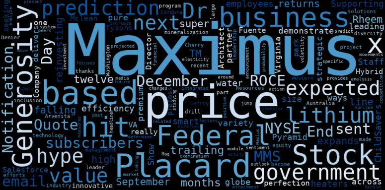 How much time have you spent trying to decide whether investing in Maximus? Many investors start with the dream of being free. They expect to find on the stock market an option to have time to develop their own interests and hobbies. That is, a way to escape a 9 to 5 job. However, investment is complex and investors end up spending whole days (and nights) trying to figure out which the right stock to invest is. The dream of stock investing becomes the nightmare of facing infinity amounts of information. As a solution, we programmed an artificial intelligence that reads the whole internet and the uses natural language processing and vectorizers to summarize the information. Usually, the AI reads several hundred pages and summarize it to a short document. This document presents our results. We found that the most common words in the internet about Maximus are: Maximus, price, …