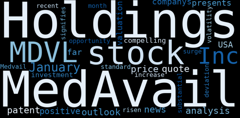 This document will help you to evaluate MedAvail Holdings without reading an infinite amount of sources. Relying only on stock quotes or prices to make investment decisions is a mistake. Analyzing and observing stock charts, highs and lows and other numerical data does not allow to evaluate the real value of a company. Stock quotes and prices are the result of underlying characteristics of a company and of events and news happening around them. For this reason, investing must be based on information, not numbers. As a solution, we programmed an artificial intelligence that reads the whole internet and the uses natural language processing and vectorizers to summarize the information. Usually, the AI reads several hundred pages and summarize it to a short document. This document presents our results. We found that the most common words in the internet about MedAvail Holdings are: Holdings, stock, Inc, Is, Medavail, January, MedAvail, …