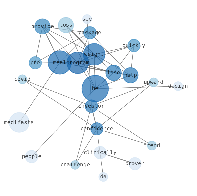 How much time have you spent trying to decide whether investing in Medifast? Many investors start with the dream of being free. They expect to find on the stock market an option to have time to develop their own interests and hobbies. That is, a way to escape a 9 to 5 job. However, investment is complex and investors end up spending whole days (and nights) trying to figure out which the right stock to invest is. The dream of stock investing becomes the nightmare of facing infinity amounts of information. As a solution, we programmed an artificial intelligence that reads the whole internet and the uses natural language processing and vectorizers to summarize the information. Usually, the AI reads several hundred pages and summarize it to a short document. This document presents our results. We found that the most common words in the internet about Medifast are: Medifast, meal, …