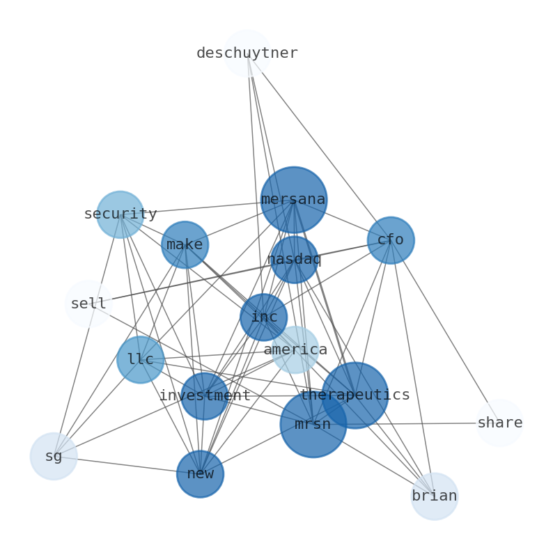 This document will help you to evaluate Mersana Therapeutics without reading an infinite amount of sources. Relying only on stock quotes or prices to make investment decisions is a mistake. Analyzing and observing stock charts, highs and lows and other numerical data does not allow to evaluate the real value of a company. Stock quotes and prices are the result of underlying characteristics of a company and of events and news happening around them. For this reason, investing must be based on information, not numbers. As a solution, we programmed an artificial intelligence that reads the whole internet and the uses natural language processing and vectorizers to summarize the information. Usually, the AI reads several hundred pages and summarize it to a short document. This document presents our results. We found that the most common words in the internet about Mersana Therapeutics are: Mersana, Therapeutics, stock, SG, Americas, Securities, LLC, …