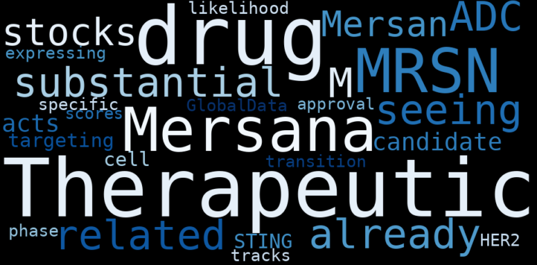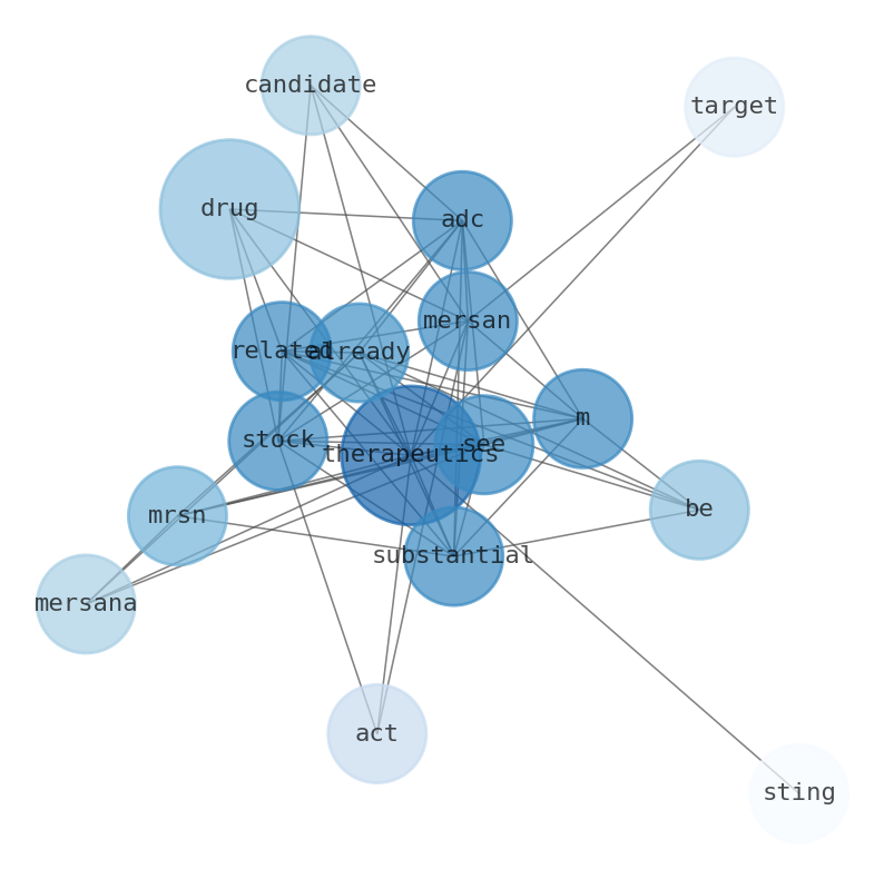 This document will help you to evaluate Mersana Therapeutics without reading an infinite amount of sources. Relying only on stock quotes or prices to make investment decisions is a mistake. Analyzing and observing stock charts, highs and lows and other numerical data does not allow to evaluate the real value of a company. Stock quotes and prices are the result of underlying characteristics of a company and of events and news happening around them. For this reason, investing must be based on information, not numbers. As a solution, we programmed an artificial intelligence that reads the whole internet and the uses natural language processing and vectorizers to summarize the information. Usually, the AI reads several hundred pages and summarize it to a short document. This document presents our results. We found that the most common words in the internet about Mersana Therapeutics are: Mersana, Therapeutics, MRSN, Were, already, see, substantial, …