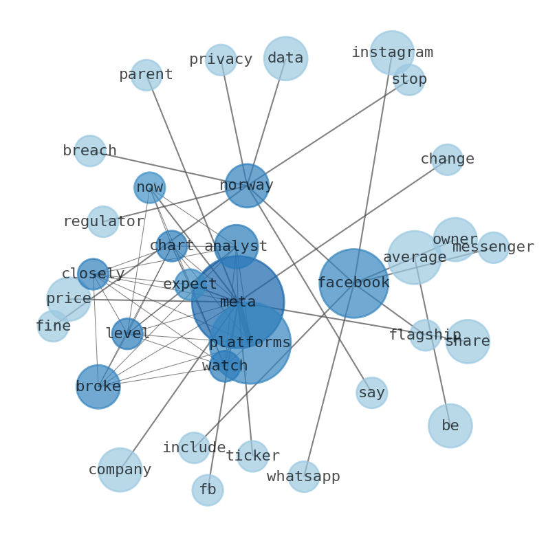 The game is changing. There is a new strategy to evaluate Meta Platforms fundamental value, possible risks and most salient advantages. Investors have traditionally relied in reading large amounts of text to evaluate the fundamental value of a stock or company. However, the development of Artificial Intelligence (AI) tools is modifying the way investments are evaluated in markets. Today, machine learning, natural language processing and bigdata allow making this process automatic, reducing large amounts of text to the elements that have a higher activation in a neural network. We programmed an artificial intelligence that reads the whole internet and the uses natural language processing and vectorizers to summarize the information. Usually, the AI reads several hundred pages and summarize it to a short document. This document presents our results. We found that the most common words in the internet about Meta Platforms are: Meta, Platforms, Facebook, average, break, analyst, gain, …