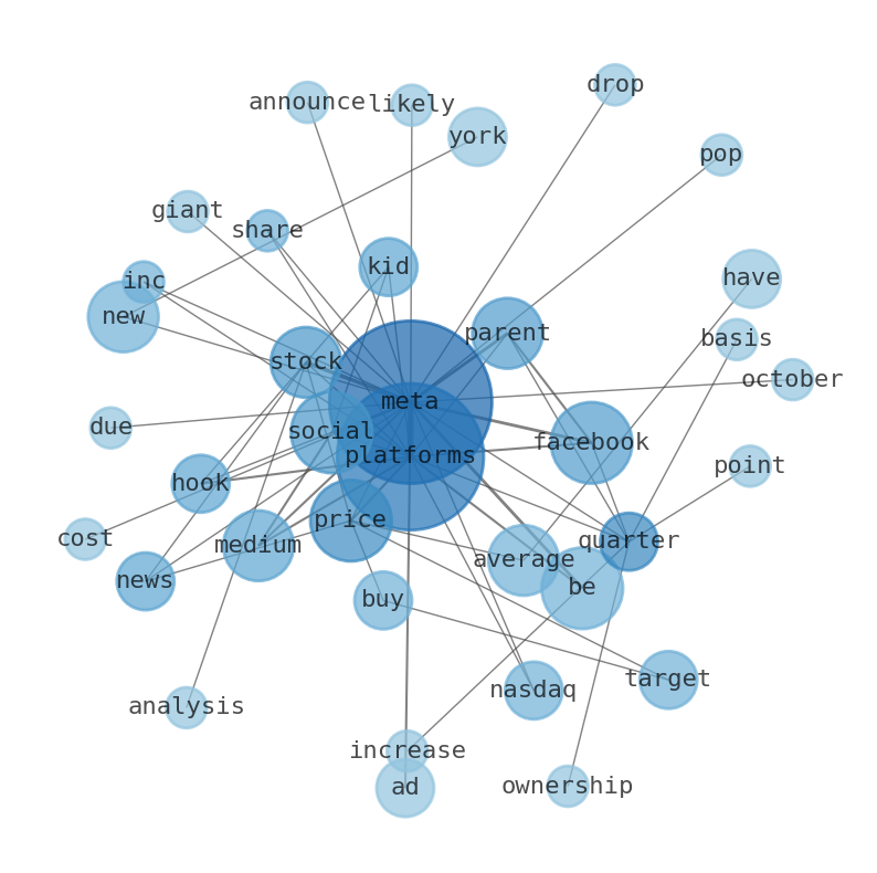 How much time have you spent trying to decide whether investing in Meta Platforms? Many investors start with the dream of being free. They expect to find on the stock market an option to have time to develop their own interests and hobbies. That is, a way to escape a 9 to 5 job. However, investment is complex and investors end up spending whole days (and nights) trying to figure out which the right stock to invest is. The dream of stock investing becomes the nightmare of facing infinity amounts of information. As a solution, we programmed an artificial intelligence that reads the whole internet and the uses natural language processing and vectorizers to summarize the information. Usually, the AI reads several hundred pages and summarize it to a short document. This document presents our results. We found that the most common words in the internet about Meta Platforms are: Meta, Platforms, Facebook, social, medium, platform, price, and the most common words in the summary are: meta, stock, platform, news, market, price, buy, . One of the sentences in the summary was: Microsoft (MSFT) is due for a pop, while Meta Platforms (META) is likely to drop.. Other searches related to this term that the AI found were: stockmarketlive, livestock, stockmarketforbeginners, thestockmarket, stockmarkettoday, stockmarkettrading, stockmarketstocks, todaystockmarket, thestockmarket, marketnews, stockmarketnews, whatisstockmarket, usstockmarket, stockmarketopen. #meta #stock #platform #news #market #price #buy.