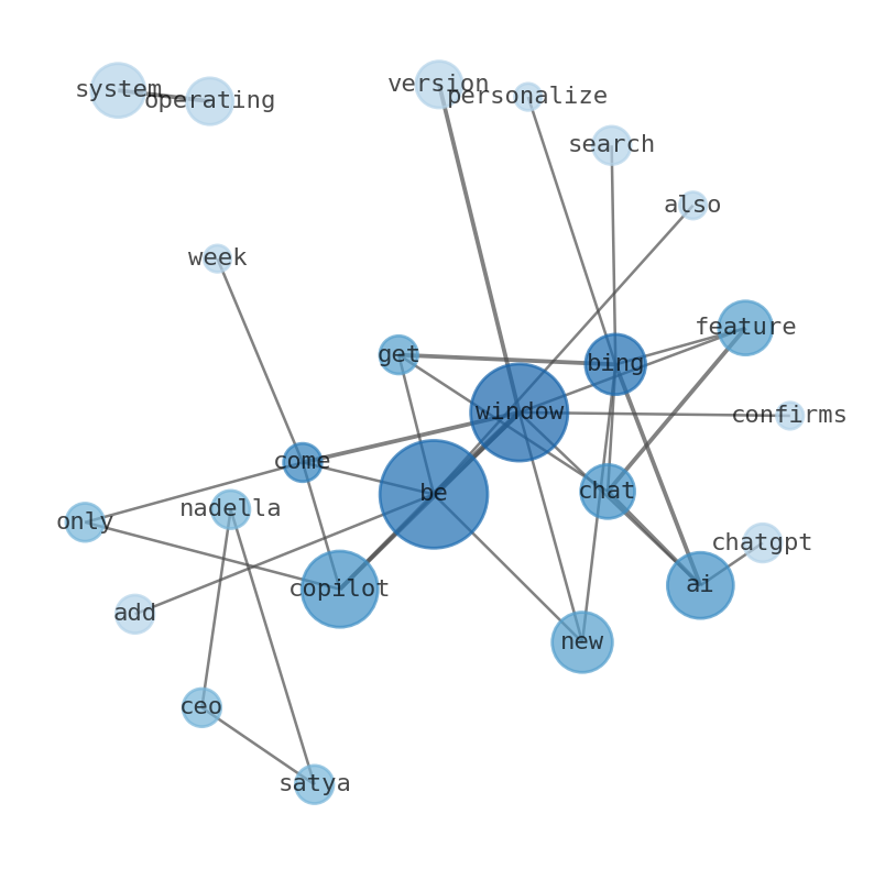 Are looking for the most relevant information about Microsoft? Investor spend a lot of time searching for information to make investment decisions in Microsoft. This task is often burdensome and consumes huge amounts of free time. It also leads to mistakes due to fatigue and bounded rationality. As a solution, we programmed an artificial intelligence that reads the whole internet and the uses natural language processing and vectorizers to summarize the information. Usually, the AI reads several hundred pages and summarize it to a short document. This document presents our results. We found that the most common words in the internet about Microsoft are: Microsoft, Windows, Copilot, AI, Bing, new, device, and the most common words in the summary are: microsoft, update, late, window, windows, release, fabric, . One of the sentences in the summary was: Microsoft CEO Satya Nadella and OpenAIs Sam Altman clearly show the direction of AI …