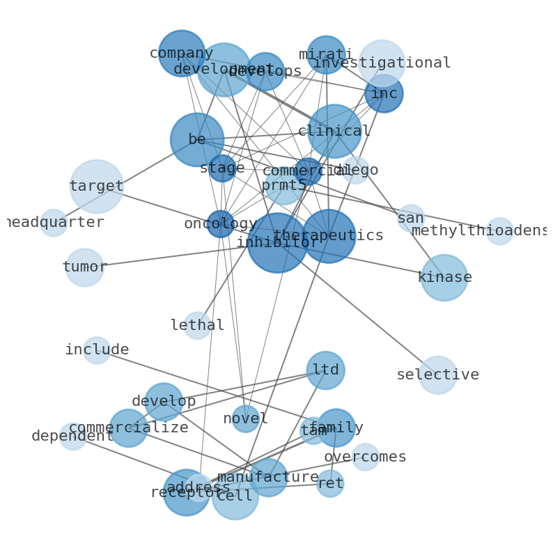 Mirati Therapeutics, Inc., a commercial-stage oncology company, develops novel therapeutics to address the genetic and immunological promoters of cancer in the United States. The company provides KRAZATI, an oral targeted treatment option for adult patients with KRAS G12C-mutated locally advanced or metastatic non-small cell lung (NSCLC), as well as in clinical development as a monotherapy and in combination with other agents. It also develops Sitravatinib, an investigational spectrum-selective kinase inhibitor in Phase 3 clinical development that inhibits receptor tyrosine kinases (RTKs), including TAM family receptors, split family receptors, and RET, which overcomes resistance to checkpoint inhibitor therapy through targeted reversal of an immunosuppressive tumor microenvironment that enhances antigen-specific T cell response and expanding dendritic cell-dependent antigen presentation. In addition, the company pipeline comprises the MRTX1719, an investigational synthetic lethal PRMT5 inhibitor designed to target the PRMT5/methylthioadensoine (MTA) complex and is in clinical development; MRTX0902, a selective SOS1 inhibitor that improves anti-tumor efficacy in combination with targeted mitogen-activated protein kinase (MAPK)-pathway inhibitors, and is in clinical development; and MRTX1133, an investigational lead KRAS G12D compound. It has a collaboration and license agreement with BeiGene, Ltd. to develop, manufacture, and commercialize sitravatinib; and Zai Lab Ltd. to research, develop, manufacture, and commercialize adagrasib in various indications. Mirati Therapeutics, Inc. was founded in 1995 and is headquartered in San Diego, California.