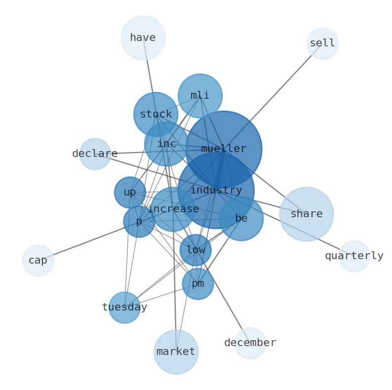 This document will help you to evaluate Mueller Industries without reading an infinite amount of sources. Relying only on stock quotes or prices to make investment decisions is a mistake. Analyzing and observing stock charts, highs and lows and other numerical data does not allow to evaluate the real value of a company. Stock quotes and prices are the result of underlying characteristics of a company and of events and news happening around them. For this reason, investing must be based on information, not numbers. As a solution, we programmed an artificial intelligence that reads the whole internet and the uses natural language processing and vectorizers to summarize the information. Usually, the AI reads several hundred pages and summarize it to a short document. This document presents our results. We found that the most common words in the internet about Mueller Industries are: Mueller, Industries, share, Inc, stock, market, increase, and the most common words in the summary are: mueller, industry, stock, valve, back, pipe, share, . One of the sentences in the summary was: Mueller Industriess market cap has increased from $801.10M to $4.49B, an increase of 460.71% since December 1, 1998. Other searches related to this term that the AI found were: stockmarketlive, livestock, stockmarketforbeginners, thestockmarket, stockmarkettoday, stockmarkettrading, stockmarketstocks, todaystockmarket, thestockmarket, marketnews, stockmarketnews, whatisstockmarket, usstockmarket, stockmarketopen. #mueller #industry #stock #valve #back #pipe #share.