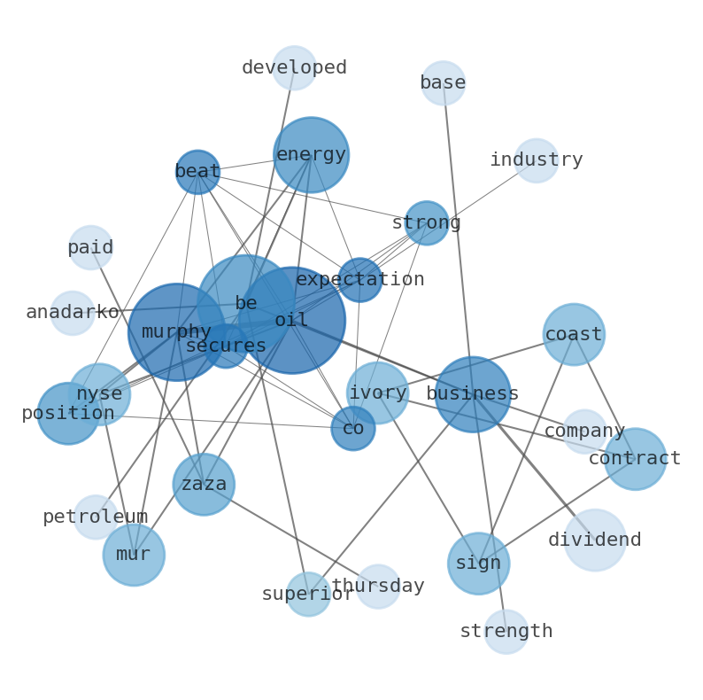 The game is changing. There is a new strategy to evaluate Murphy Oil fundamental value, possible risks and most salient advantages. Investors have traditionally relied in reading large amounts of text to evaluate the fundamental value of a stock or company. However, the development of Artificial Intelligence (AI) tools is modifying the way investments are evaluated in markets. Today, machine learning, natural language processing and bigdata allow making this process automatic, reducing large amounts of text to the elements that have a higher activation in a neural network. We programmed an artificial intelligence that reads the whole internet and the uses natural language processing and vectorizers to summarize the information. Usually, the AI reads several hundred pages and summarize it to a short document. This document presents our results. We found that the most common words in the internet about Murphy Oil are: Murphy, Oil, business, position, sign, contract, Ivory, …