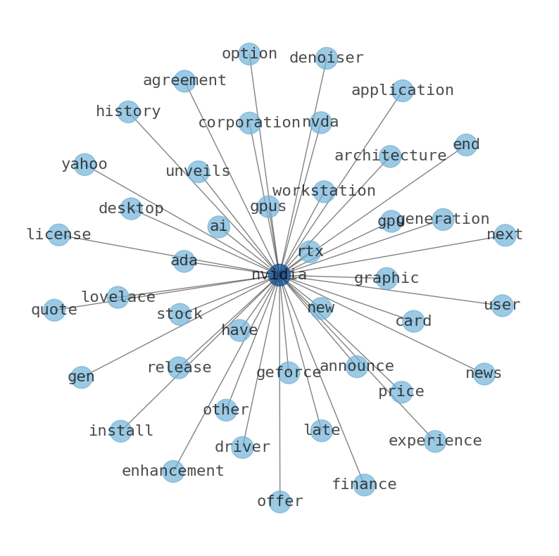 The game is changing. There is a new strategy to evaluate NVIDIA fundamental value, possible risks and most salient advantages. Investors have traditionally relied in reading large amounts of text to evaluate the fundamental value of a stock or company. However, the development of Artificial Intelligence (AI) tools is modifying the way investments are evaluated in markets. Today, machine learning, natural language processing and bigdata allow making this process automatic, reducing large amounts of text to the elements that have a higher activation in a neural network. We programmed an artificial intelligence that reads the whole internet and the uses natural language processing and vectorizers to summarize the information. Usually, the AI reads several hundred pages and summarize it to a short document. This document presents our results. We found that the most common words in the internet about NVIDIA are: Nvidia, NVIDIA, DLSS, performance, RTX, graphic, Remix, and the …