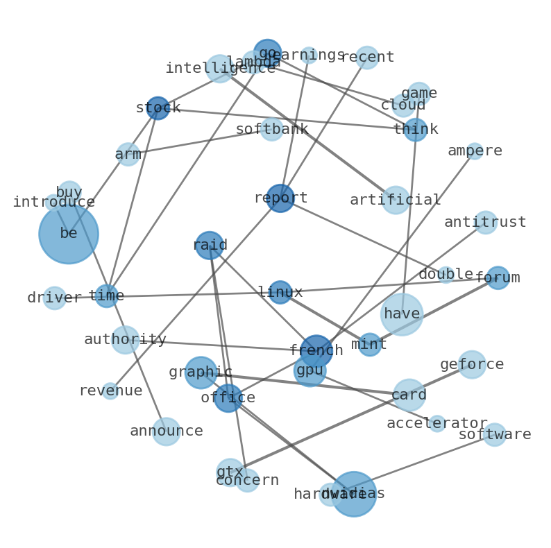 How much time have you spent trying to decide whether investing in NVIDIA? Many investors start with the dream of being free. They expect to find on the stock market an option to have time to develop their own interests and hobbies. That is, a way to escape a 9 to 5 job. However, investment is complex and investors end up spending whole days (and nights) trying to figure out which the right stock to invest is. The dream of stock investing becomes the nightmare of facing infinity amounts of information. As a solution, we programmed an artificial intelligence that reads the whole internet and the uses natural language processing and vectorizers to summarize the information. Usually, the AI reads several hundred pages and summarize it to a short document. This document presents our results. We found that the most common words in the internet about NVIDIA are: Nvidia, Nvidias, …