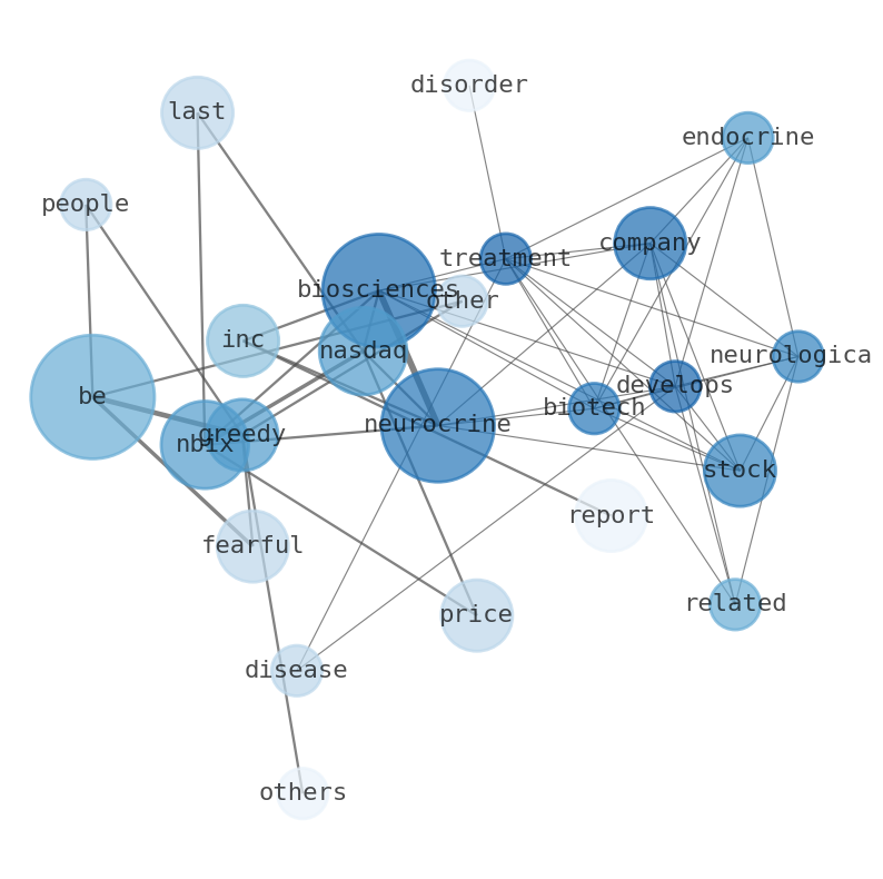 This document will help you to evaluate Neurocrine Biosciences without reading an infinite amount of sources. Relying only on stock quotes or prices to make investment decisions is a mistake. Analyzing and observing stock charts, highs and lows and other numerical data does not allow to evaluate the real value of a company. Stock quotes and prices are the result of underlying characteristics of a company and of events and news happening around them. For this reason, investing must be based on information, not numbers. As a solution, we programmed an artificial intelligence that reads the whole internet and the uses natural language processing and vectorizers to summarize the information. Usually, the AI reads several hundred pages and summarize it to a short document. This document presents our results. We found that the most common words in the internet about Neurocrine Biosciences are: Neurocrine, Biosciences, stock, fearful, greedy, Inc, NASDAQNBIX, and the most common words in the summary are: neurocrine, bioscience, best, inc, stock, news, pharmaceutical, . One of the sentences in the summary was: Jefferies Financial Group increased their target price on Neurocrines.. Other searches related to this term that the AI found were: stockmarketlive, livestock, stockmarketforbeginners, thestockmarket, stockmarkettoday, stockmarkettrading, stockmarketstocks, todaystockmarket, thestockmarket, marketnews, stockmarketnews, whatisstockmarket, usstockmarket, stockmarketopen. #neurocrine #bioscience #best #inc #stock #news #pharmaceutical.
