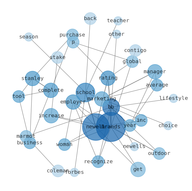 This document will help you to evaluate Newell Brands without reading an infinite amount of sources. Relying only on stock quotes or prices to make investment decisions is a mistake. Analyzing and observing stock charts, highs and lows and other numerical data does not allow to evaluate the real value of a company. Stock quotes and prices are the result of underlying characteristics of a company and of events and news happening around them. For this reason, investing must be based on information, not numbers. As a solution, we programmed an artificial intelligence that reads the whole internet and the uses natural language processing and vectorizers to summarize the information. Usually, the AI reads several hundred pages and summarize it to a short document. This document presents our results. We found that the most common words in the internet about Newell Brands are: Newell, Brands, BB, Stanley, complete, Get, marketing, …
