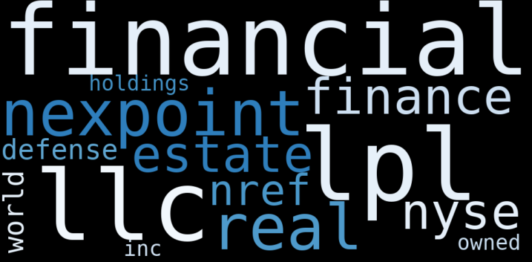 Are looking for the most relevant information about NexPoint Real Estate Finance? Investor spend a lot of time searching for information to make investment decisions in NexPoint Real Estate Finance. This task is often burdensome and consumes huge amounts of free time. It also leads to mistakes due to fatigue and bounded rationality. As a solution, we programmed an artificial intelligence that reads the whole internet and the uses natural language processing and vectorizers to summarize the information. Usually, the AI reads several hundred pages and summarize it to a short document. This document presents our results. We found that the most common words in the internet about NexPoint Real Estate Finance are: defense, world, lpl, financial, llc, holding, nexpoint, and the most common words in the summary are: real, estate, price, upside, inc, stock, current, . One of the sentences in the summary was: LPL Financial LLC owned about …