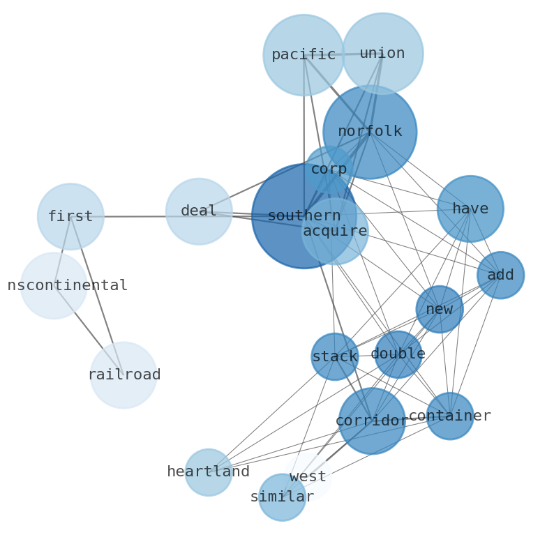 Norfolk Southern Corp. has added a new double-stack container corridor similar to the Heartland Corridor through southern West Virginia and Ohio. Union Pacific and Norfolk Southern announced their plan to form what they describe as the first transcontinental railroad in the United States. Union Pacific would acquire Norfolk Southern in a deal now valued at around $71.5 billion. Union. Pacific has proposed to acquire Norfolk. Southern in an $85 billion deal that would create the countrys first. transcontinental railroads.