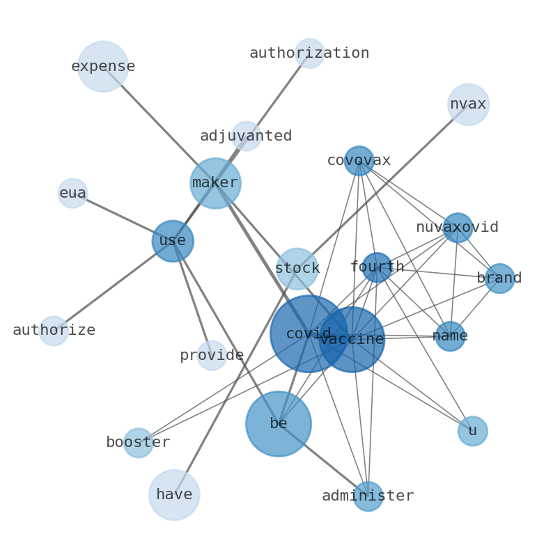 The game is changing. There is a new strategy to evaluate Novavax fundamental value, possible risks and most salient advantages. Investors have traditionally relied in reading large amounts of text to evaluate the fundamental value of a stock or company. However, the development of Artificial Intelligence (AI) tools is modifying the way investments are evaluated in markets. Today, machine learning, natural language processing and bigdata allow making this process automatic, reducing large amounts of text to the elements that have a higher activation in a neural network. We programmed an artificial intelligence that reads the whole internet and the uses natural language processing and vectorizers to summarize the information. Usually, the AI reads several hundred pages and summarize it to a short document. This document presents our results. We found that the most common words in the internet about Novavax are: Novavax, COVID19, vaccine, maker, expense, workforce, year, and the …
