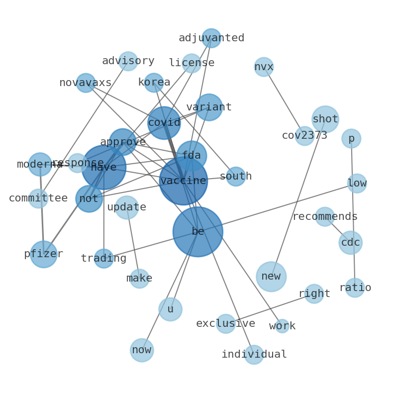 Are looking for the most relevant information about Novavax? Investor spend a lot of time searching for information to make investment decisions in Novavax. This task is often burdensome and consumes huge amounts of free time. It also leads to mistakes due to fatigue and bounded rationality. As a solution, we programmed an artificial intelligence that reads the whole internet and the uses natural language processing and vectorizers to summarize the information. Usually, the AI reads several hundred pages and summarize it to a short document. This document presents our results. We found that the most common words in the internet about Novavax are: Novavax, vaccine, COVID19, new, FDA, shot, approve, and the most common words in the summary are: novavax, vaccine, covid19, stock, job, fda, covid, . One of the sentences in the summary was: NovoCure are trading lower by around 31%.. Other searches related to this term that …
