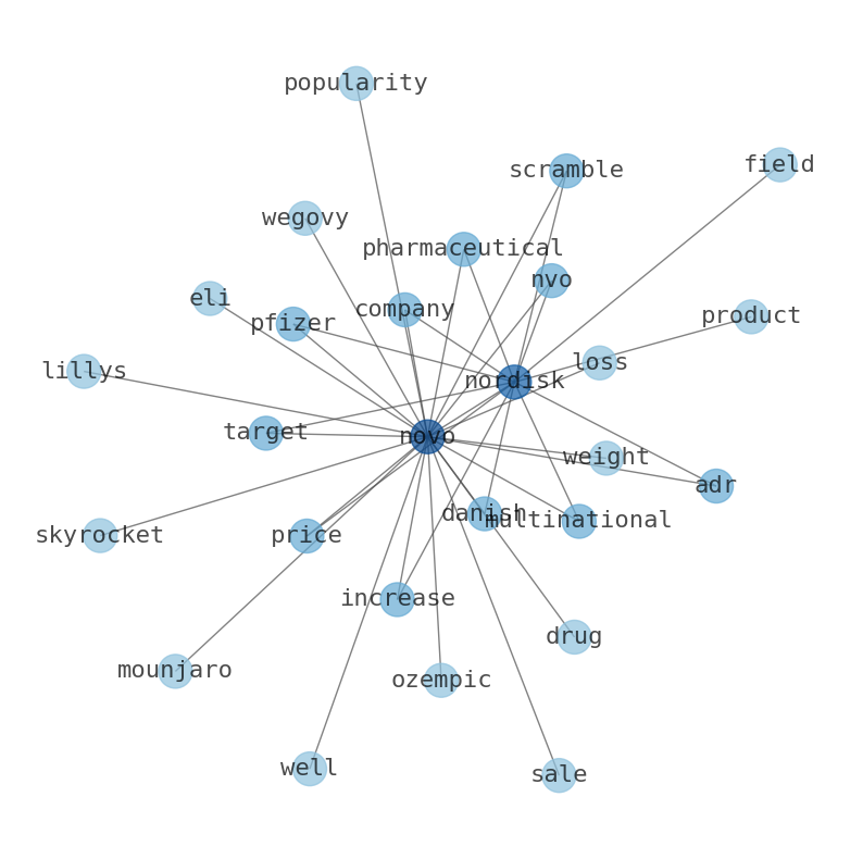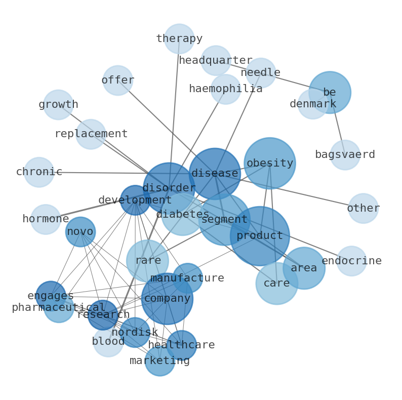 Novo Nordisk A/S, a healthcare company, engages in the research, development, manufacture, and marketing of pharmaceutical products worldwide. It operates in two segments, Diabetes and Obesity care, and Rare Disease. The Diabetes and Obesity care segment provides products in the areas of insulins, GLP-1 and related delivery systems, oral antidiabetic products, obesity, glucagon, needles, and other chronic diseases. The Rare Disease segment offers products in the areas of haemophilia, blood disorders, endocrine disorders, growth disorders, and hormone replacement therapy. The company collaboration agreements with Gilead Sciences, Inc. The company was founded in 1923 and is headquartered in Bagsvaerd, Denmark.