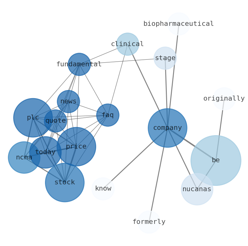 This document will help you to evaluate NuCana without reading an infinite amount of sources. Relying only on stock quotes or prices to make investment decisions is a mistake. Analyzing and observing stock charts, highs and lows and other numerical data does not allow to evaluate the real value of a company. Stock quotes and prices are the result of underlying characteristics of a company and of events and news happening around them. For this reason, investing must be based on information, not numbers. As a solution, we programmed an artificial intelligence that reads the whole internet and the uses natural language processing and vectorizers to summarize the information. Usually, the AI reads several hundred pages and summarize it to a short document. This document presents our results. We found that the most common words in the internet about NuCana are: plc, stock, price, company, NCNA, today, NuCana, and the …