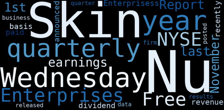 This document will help you to evaluate Nu Skin Enterprises without reading an infinite amount of sources. Relying only on stock quotes or prices to make investment decisions is a mistake. Analyzing and observing stock charts, highs and lows and other numerical data does not allow to evaluate the real value of a company. Stock quotes and prices are the result of underlying characteristics of a company and of events and news happening around them. For this reason, investing must be based on information, not numbers. As a solution, we programmed an artificial intelligence that reads the whole internet and the uses natural language processing and vectorizers to summarize the information. Usually, the AI reads several hundred pages and summarize it to a short document. This document presents our results. We found that the most common words in the internet about Nu Skin Enterprises are: Nu, Skin, Wednesday, quarterly, Enterprises, …