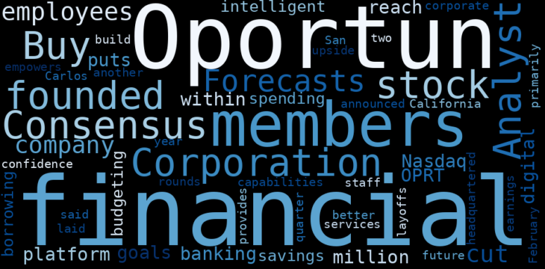 How much time have you spent trying to decide whether investing in Oportun Financial? Many investors start with the dream of being free. They expect to find on the stock market an option to have time to develop their own interests and hobbies. That is, a way to escape a 9 to 5 job. However, investment is complex and investors end up spending whole days (and nights) trying to figure out which the right stock to invest is. The dream of stock investing becomes the nightmare of facing infinity amounts of information. As a solution, we programmed an artificial intelligence that reads the whole internet and the uses natural language processing and vectorizers to summarize the information. Usually, the AI reads several hundred pages and summarize it to a short document. This document presents our results. We found that the most common words in the internet about Oportun Financial are: …