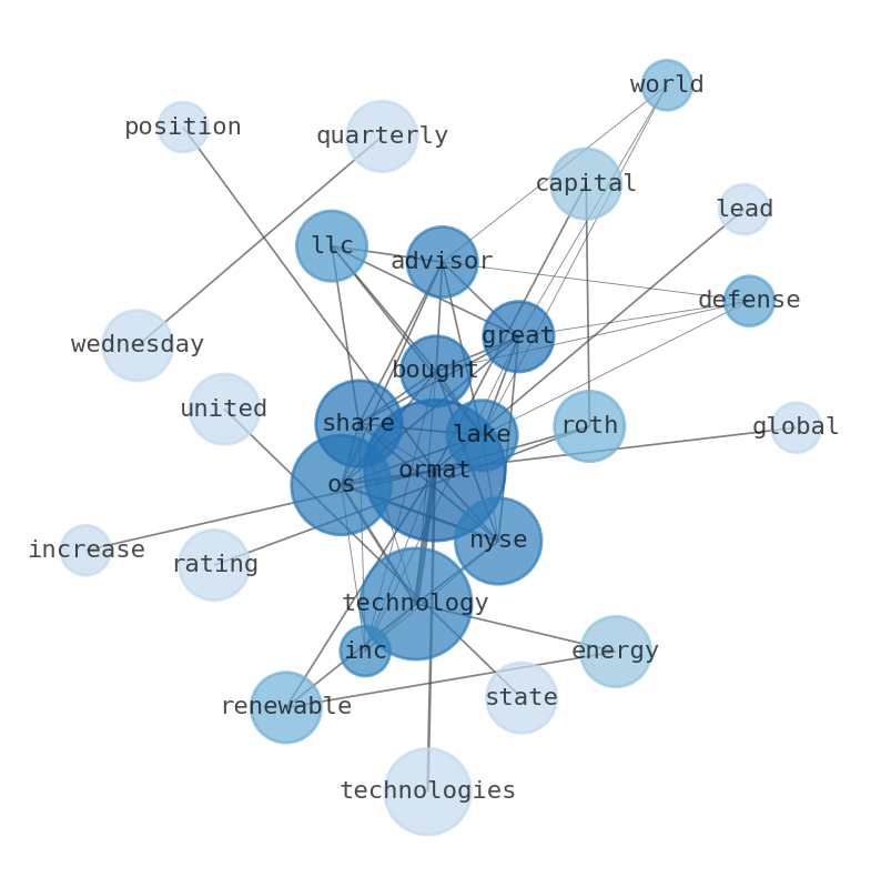 This document will help you to evaluate Ormat Technologies without reading an infinite amount of sources. Relying only on stock quotes or prices to make investment decisions is a mistake. Analyzing and observing stock charts, highs and lows and other numerical data does not allow to evaluate the real value of a company. Stock quotes and prices are the result of underlying characteristics of a company and of events and news happening around them. For this reason, investing must be based on information, not numbers. As a solution, we programmed an artificial intelligence that reads the whole internet and the uses natural language processing and vectorizers to summarize the information. Usually, the AI reads several hundred pages and summarize it to a short document. This document presents our results. We found that the most common words in the internet about Ormat Technologies are: Ormat, Technologies, Tech, company, share, buy, NYSEORA, and the most common words in the summary are: report, technology, initiative, market, proposal, ormat, stock, . One of the sentences in the summary was: Roth Capital upgraded their rating on Ormat Technologies from “neutral” to “buy” Roth Capital’s upgrade stirred excitement.. Other searches related to this term that the AI found were: stockmarketlive, livestock, stockmarketforbeginners, thestockmarket, stockmarkettoday, stockmarkettrading, stockmarketstocks, todaystockmarket, thestockmarket, marketnews, stockmarketnews, whatisstockmarket, usstockmarket, stockmarketopen. #report #technology #initiative #market #proposal #ormat #stock.