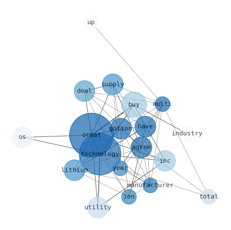 This document will help you to evaluate Ormat Technologies without reading an infinite amount of sources. Relying only on stock quotes or prices to make investment decisions is a mistake. Analyzing and observing stock charts, highs and lows and other numerical data does not allow to evaluate the real value of a company. Stock quotes and prices are the result of underlying characteristics of a company and of events and news happening around them. For this reason, investing must be based on information, not numbers. As a solution, we programmed an artificial intelligence that reads the whole internet and the uses natural language processing and vectorizers to summarize the information. Usually, the AI reads several hundred pages and summarize it to a short document. This document presents our results. We found that the most common words in the internet about Ormat Technologies are: Ormat, Technologies, Gotion, agree, supply, deal, geothermal, …