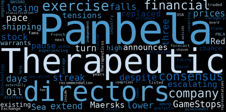 This document will help you to evaluate Panbela Therapeutics without reading an infinite amount of sources. Relying only on stock quotes or prices to make investment decisions is a mistake. Analyzing and observing stock charts, highs and lows and other numerical data does not allow to evaluate the real value of a company. Stock quotes and prices are the result of underlying characteristics of a company and of events and news happening around them. For this reason, investing must be based on information, not numbers. As a solution, we programmed an artificial intelligence that reads the whole internet and the uses natural language processing and vectorizers to summarize the information. Usually, the AI reads several hundred pages and summarize it to a short document. This document presents our results. We found that the most common words in the internet about Panbela Therapeutics are: Panbela, Therapeutics, director, exercise, financial, trade, consensus, …