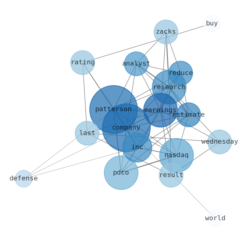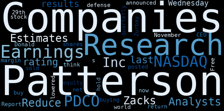 Are looking for the most relevant information about Patterson Companies? Investor spend a lot of time searching for information to make investment decisions in Patterson Companies. This task is often burdensome and consumes huge amounts of free time. It also leads to mistakes due to fatigue and bounded rationality. As a solution, we programmed an artificial intelligence that reads the whole internet and the uses natural language processing and vectorizers to summarize the information. Usually, the AI reads several hundred pages and summarize it to a short document. This document presents our results. We found that the most common words in the internet about Patterson Companies are: Patterson, Companies, Research, NASDAQPDCO, Zacks, Analysts, Earnings, and the most common words in the summary are: job, patterson, company, news, open, share, engineer, . One of the sentences in the summary was: CEO Donald Zurbay sold 1,868 shares of Patterson Companies stock.. Other …