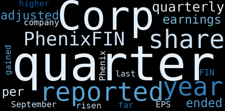 How much time have you spent trying to decide whether investing in PhenixFIN? Many investors start with the dream of being free. They expect to find on the stock market an option to have time to develop their own interests and hobbies. That is, a way to escape a 9 to 5 job. However, investment is complex and investors end up spending whole days (and nights) trying to figure out which the right stock to invest is. The dream of stock investing becomes the nightmare of facing infinity amounts of information. As a solution, we programmed an artificial intelligence that reads the whole internet and the uses natural language processing and vectorizers to summarize the information. Usually, the AI reads several hundred pages and summarize it to a short document. This document presents our results. We found that the most common words in the internet about PhenixFIN are: quarter, Corp, …