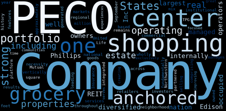 Phillips Edison & Company, Inc. (PECO), an internally-managed REIT, is one of the nation's largest owners and operators of grocery-anchored shopping centers. PECO's diversified portfolio of well-occupied neighborhood shopping centers features a mix of national and regional retailers selling necessity-based goods and services in fundamentally strong markets throughout the United States. Through its vertically-integrated operating platform, the Company manages a portfolio of 309 properties, including 283 wholly-owned properties comprising approximately 31.7 million square feet across 31 states (as of September 30, 2020). PECO has generated strong operating results over its 29+ year history and has partnered with leading institutional commercial real estate investors, including TPG Real Estate and The Northwestern Mutual Life Insurance Company. The Company remains exclusively focused on creating great grocery-anchored shopping experiences and improving the communities it serves one center at a time.