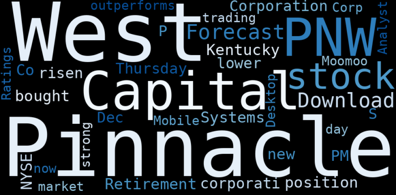This document will help you to evaluate Pinnacle West Capital without reading an infinite amount of sources. Relying only on stock quotes or prices to make investment decisions is a mistake. Analyzing and observing stock charts, highs and lows and other numerical data does not allow to evaluate the real value of a company. Stock quotes and prices are the result of underlying characteristics of a company and of events and news happening around them. For this reason, investing must be based on information, not numbers. As a solution, we programmed an artificial intelligence that reads the whole internet and the uses natural language processing and vectorizers to summarize the information. Usually, the AI reads several hundred pages and summarize it to a short document. This document presents our results. We found that the most common words in the internet about Pinnacle West Capital are: Pinnacle, West, Capital, stock, PNW, …