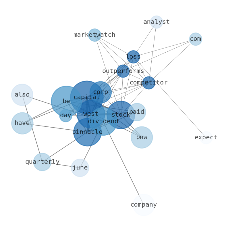 The game is changing. There is a new strategy to evaluate Pinnacle West Capital fundamental value, possible risks and most salient advantages. Investors have traditionally relied in reading large amounts of text to evaluate the fundamental value of a stock or company. However, the development of Artificial Intelligence (AI) tools is modifying the way investments are evaluated in markets. Today, machine learning, natural language processing and bigdata allow making this process automatic, reducing large amounts of text to the elements that have a higher activation in a neural network. We programmed an artificial intelligence that reads the whole internet and the uses natural language processing and vectorizers to summarize the information. Usually, the AI reads several hundred pages and summarize it to a short document. This document presents our results. We found that the most common words in the internet about Pinnacle West Capital are: Capital, Pinnacle, West, stock, dividend, …