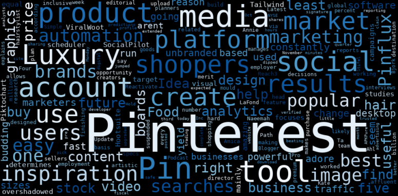 The game is changing. There is a new strategy to evaluate Pinterest fundamental value, possible risks and most salient advantages. Investors have traditionally relied in reading large amounts of text to evaluate the fundamental value of a stock or company. However, the development of Artificial Intelligence (AI) tools is modifying the way investments are evaluated in markets. Today, machine learning, natural language processing and bigdata allow making this process automatic, reducing large amounts of text to the elements that have a higher activation in a neural network. We programmed an artificial intelligence that reads the whole internet and the uses natural language processing and vectorizers to summarize the information. Usually, the AI reads several hundred pages and summarize it to a short document. This document presents our results. We found that the most common words in the internet about Pinterest are: Pinterest, tool, medium, use, account, product, result, and the …