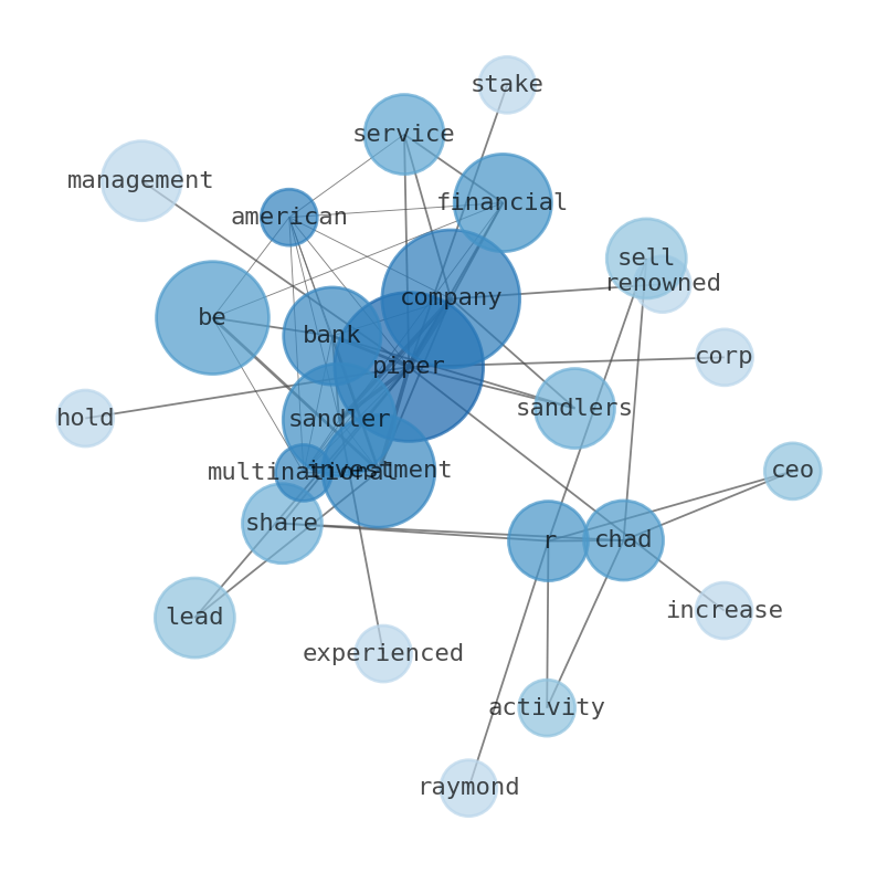 Are looking for the most relevant information about Piper Sandler Companies? Investor spend a lot of time searching for information to make investment decisions in Piper Sandler Companies. This task is often burdensome and consumes huge amounts of free time. It also leads to mistakes due to fatigue and bounded rationality. As a solution, we programmed an artificial intelligence that reads the whole internet and the uses natural language processing and vectorizers to summarize the information. Usually, the AI reads several hundred pages and summarize it to a short document. This document presents our results. We found that the most common words in the internet about Piper Sandler Companies are: Piper, Companies, Sandler, investment, bank, financial, service, and the most common words in the summary are: sandler, company, piper, stock, market, financial, best, . One of the sentences in the summary was: R. Other searches related to this term that …